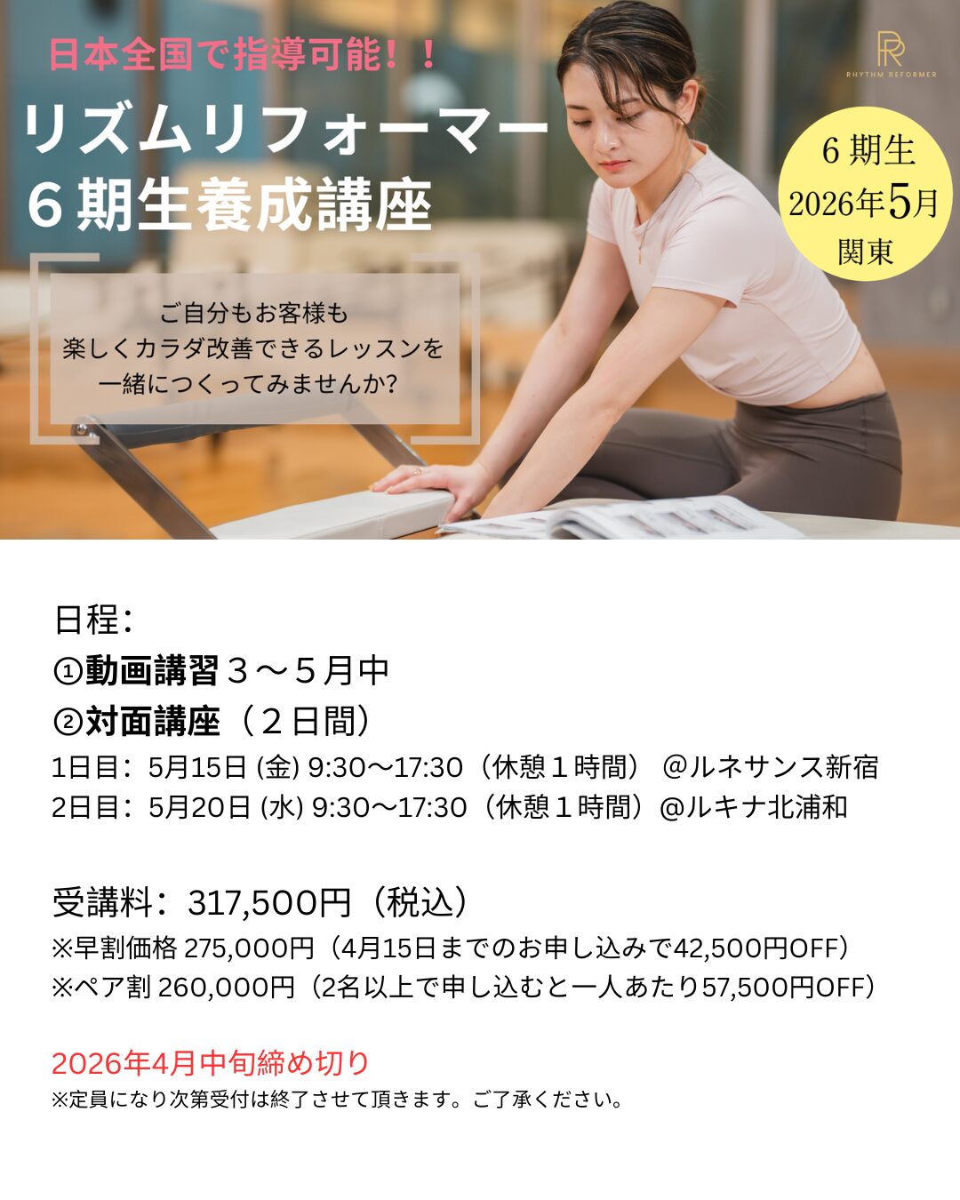 充実した研修のお陰で、音楽に合わせるという初めての挑戦でも自信を持ってリズムリフォーマーのレッスンが出来ています!